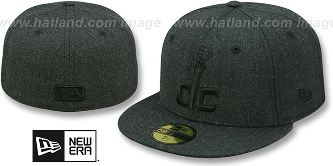 Authentic and ORIGINAL 59Fifty fitted hat by New Era, black heather wool blend deep crown and visor, light grey undervisor, raised embroidered team logo on front in black, black embroidered New Era flag logo on side, black raised embroidered NBA logo on back. This Washington Wizards hat is made by New Era and is licensed by the NBA - National Basketball Association.