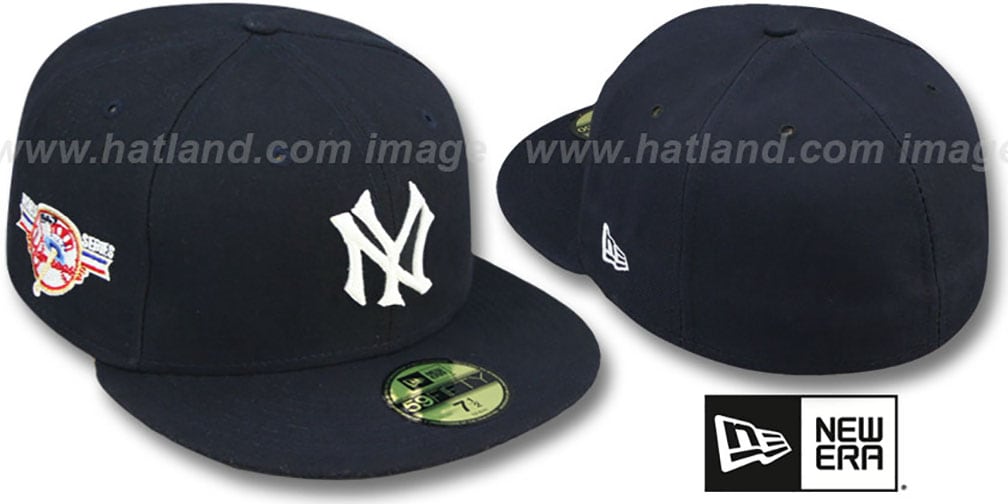 Authentic and Original 59Fifty wool fitted hat by New Era, team color navy blue deep crown and visor, navy undervisor, raised embroidered Cooperstown, Old SchoolNY team logo on front, 1947 WORLD SERIES embroidered patch on side, embroidered New Era flag on opposite side, no logo on back . This New York Yankees hat is made by New Era and is licensed by the MLB - Major League Baseball.