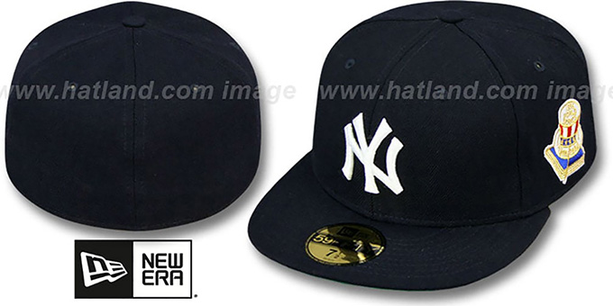 Authentic Collection 59FIFTY wool fitted hat by New Era, team color navy blue deep crown and visor, throwback kelly green undervisor, raised embroidered team logo on front, 1956 WORLD SERIES embroidered patch on side . This New York Yankees baseball cap is made by New Era and is licensed by the MLB - Major League Baseball.