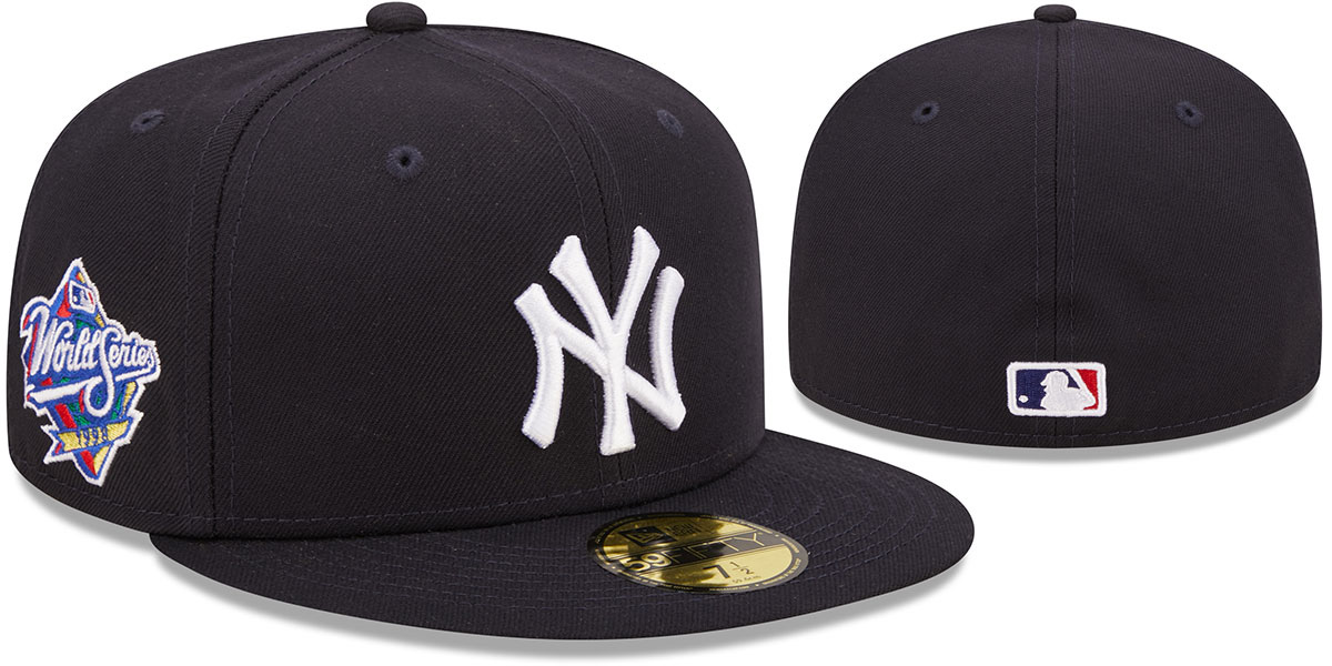 Authentic and Original 59Fifty fitted hat by New Era, dark navy blue authentic poly crown and visor, light grey undervisor, black sweatband, raised embroidered team logo on front, embroidered 1998 World Series logo side-patch on side, embroidered New Era logo on opposite side, matching raised embroidered MLB logo on back. This New York Yankees hat is made by New Era and is licensed by the MLB - Major League Baseball.