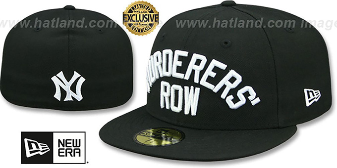 Authentic and ORIGINAL 59FIFTY fitted hat by New Era, black authentic poly crown and visor with light grey undervisor, raised embroidered MURDERERS' ROW on front in white, embroidered New Era logo on side, embroidered Cooperstown, Old School team logo on back. Murderers’ Row were the baseball teams of the New York Yankees in the late 1920s, widely considered one of the best teams in history. The nickname is in particular describing the first six hitters in the 1927 team lineup: Earle Combs, Mark Koenig, Babe Ruth, Lou Gehrig, Bob Meusel, and Tony Lazzeri. This hat produced EXCLUSIVELY for Hatland.com. This New York Yankees baseball cap is made by New Era and is licensed by the MLB - Major League Baseball.