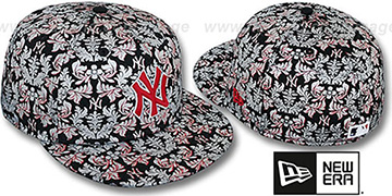 'Authentic' and ORIGINAL 59FIFTY fitted hat by New Era, white cotton twill blend deep crown and visor with shades of brown-wheat-manilla 'Paint Splatter' print All-Over deep crown and visor, brown undervisor and flip, brown piping on mid seams, matching raised embroidered team logo on front, matching embroidered MLB logo on back. This New York Yankees baseball cap is made by New Era and is licensed by the MLB - Major League Baseball.